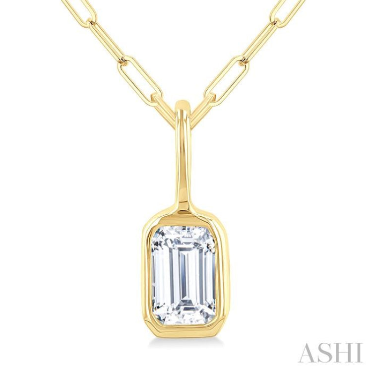 1/5 Ctw Emerald Cut Bezel Set Diamond Fashion Pendant With Paperclip Chain in 10K Yellow Gold