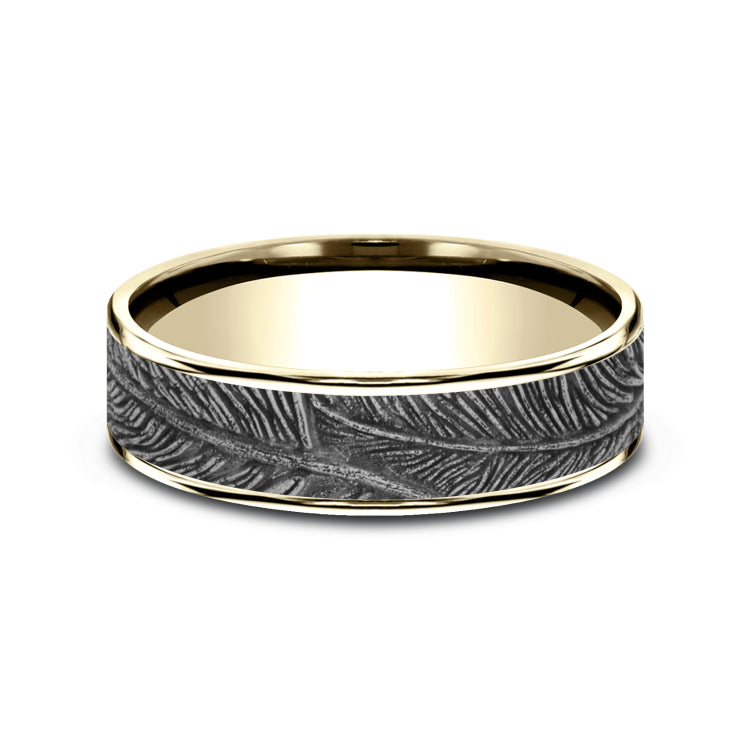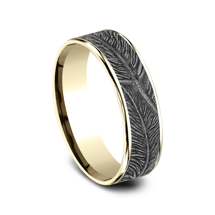 6.5mm, Comfort fit14K Yellow and White GoldFeather pattern, thin edges