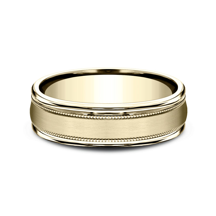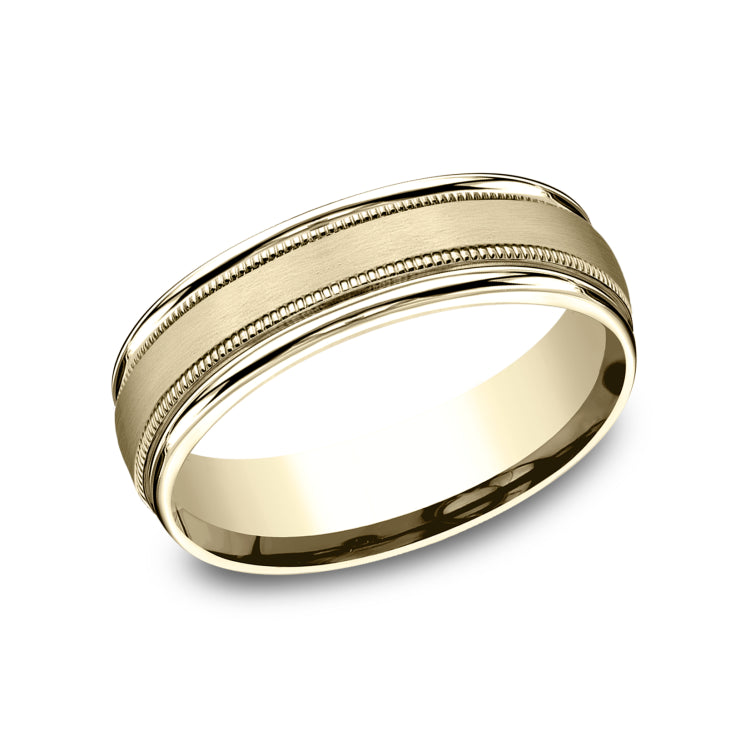 6.5mm, Lightweight comfort fit14K Yellow GoldSatin finish, milgrain detailing, polished round edges