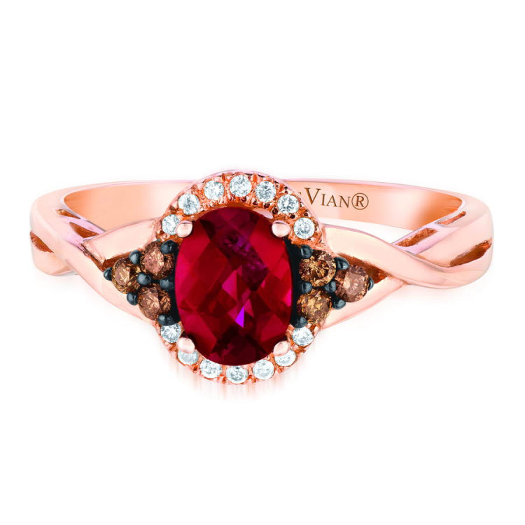 Le Vian Chocolatier Ring featuring 3/4 cts. Raspberry Rhodolite, 1/8 cts. Chocolate Diamonds, 1/20 cts. Vanilla Diamonds set in 14K Strawberry Gold
