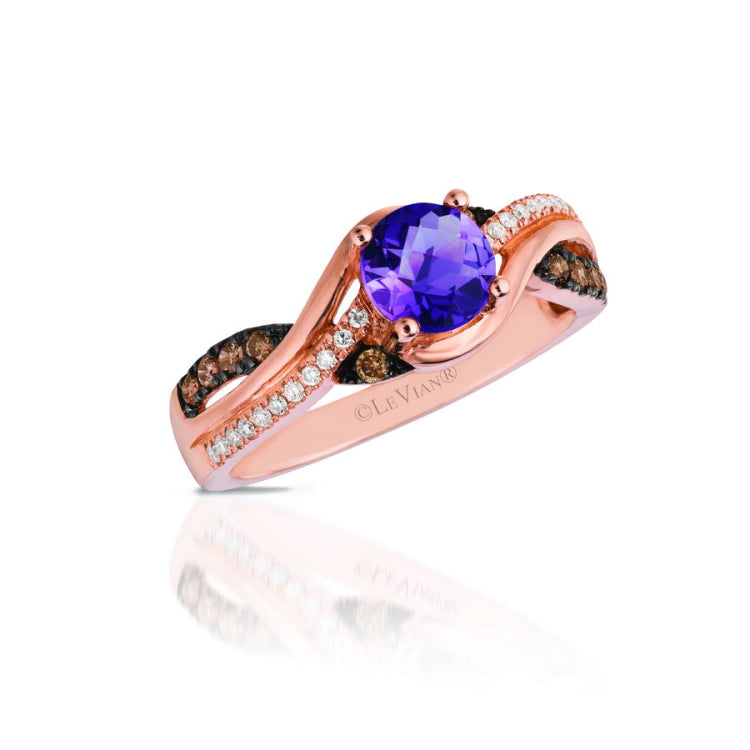 Le Vian Chocolatier Ring featuring 5/8 cts. Cotton Candy Amethyst, 1/6 cts. Chocolate Diamonds, 1/15 cts. Vanilla Diamonds set in 14K Strawberry Gold