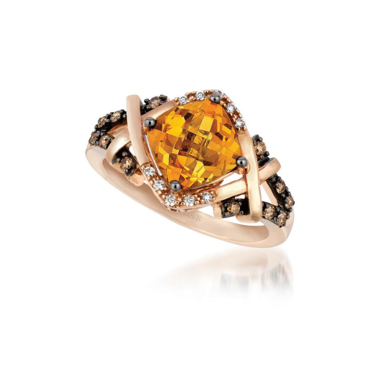Le Vian Chocolatier Ring featuring 1 5/8 cts. Cinnamon Citrine, 1/8 cts. Chocolate Diamonds, 1/20 cts. Vanilla Diamonds set in 14K Strawberry Gold