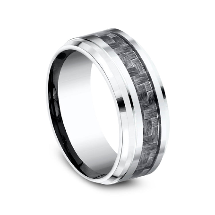 9mm, Comfort fitWhite Cobalt and Grey Carbon FiberCarbon Fiber center, polished bevel edges