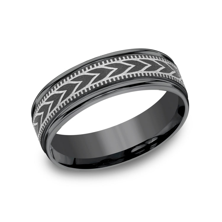 7mm, Comfort fitDarkened TantalumWheat pattern with milgrain detail, polished round edges