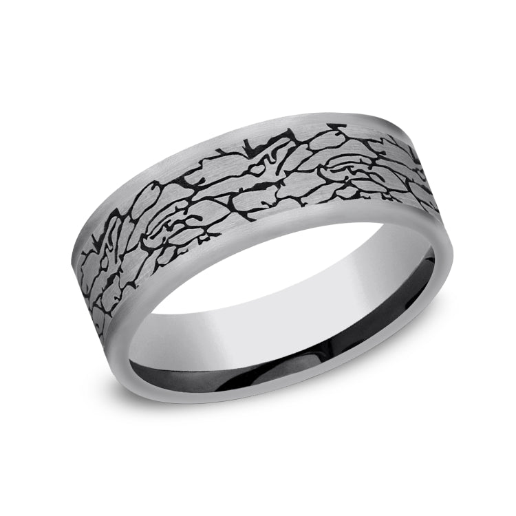 7mm, Comfort fitTungstenFractured rock pattern