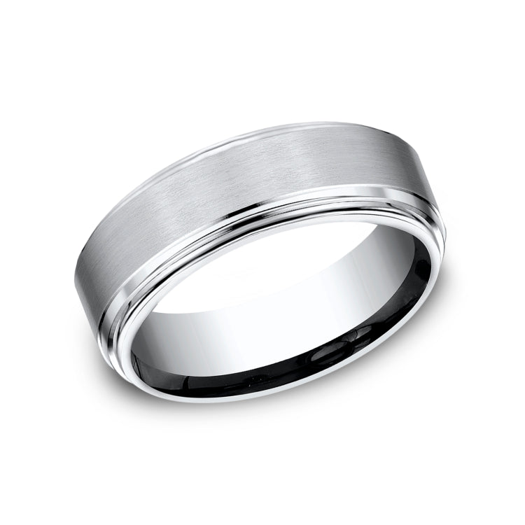 8mm, Comfort fit White Cobalt Satin center, polished double bevel edges