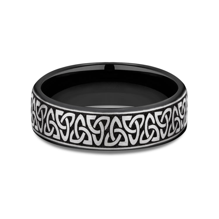 6.5mm, European comfort fitGrey/Black TitaniumCeltic knot pattern
