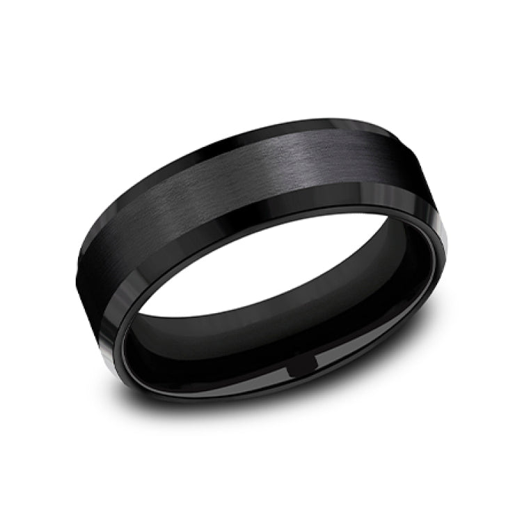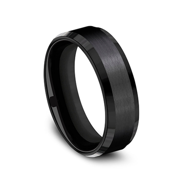 7mm, Comfort fitBlack TitaniumSatin center, polished bevel edges