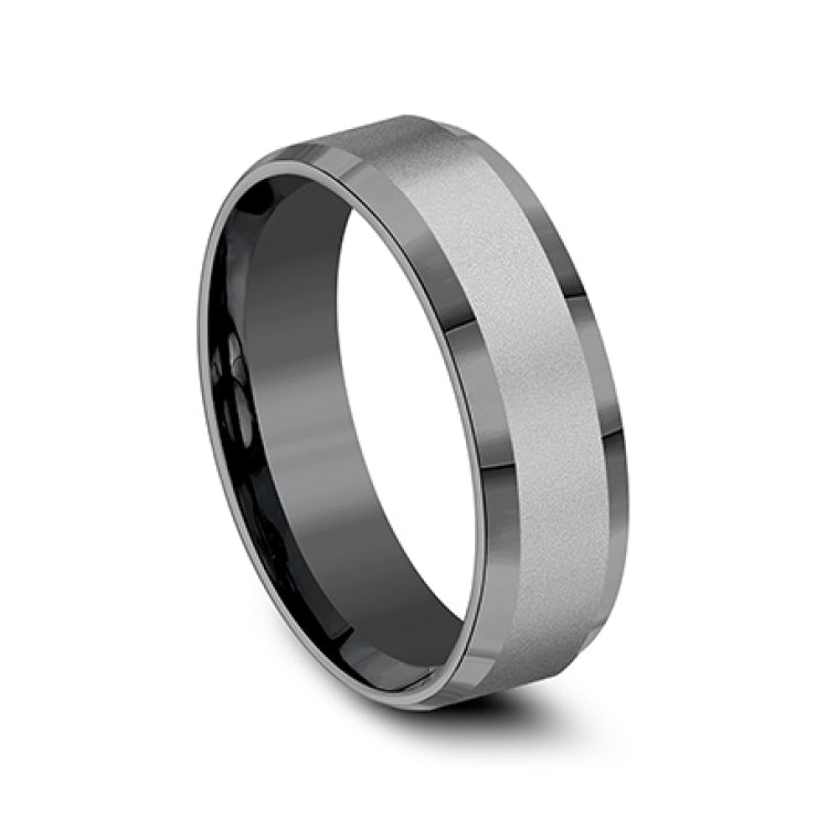 7mm, Comfort fitDarkened TantalumSandblast center, polished bevel edges