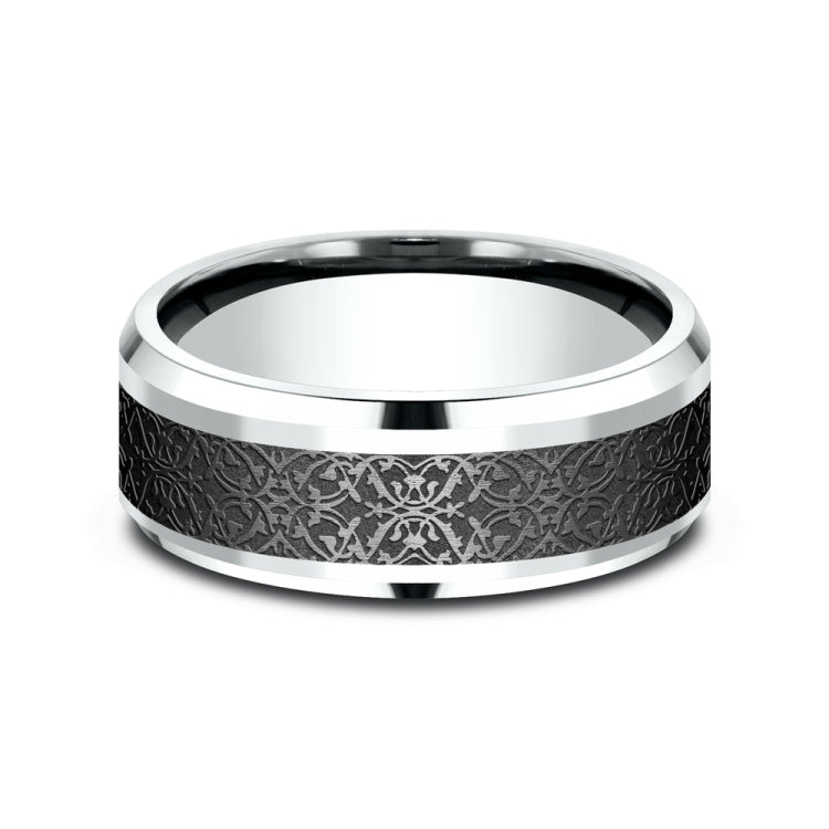 8mm, Comfort fit14K White Gold and Black TitaniumOttoman pattern, polished drop bevel edges