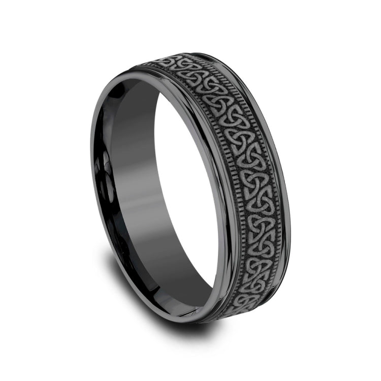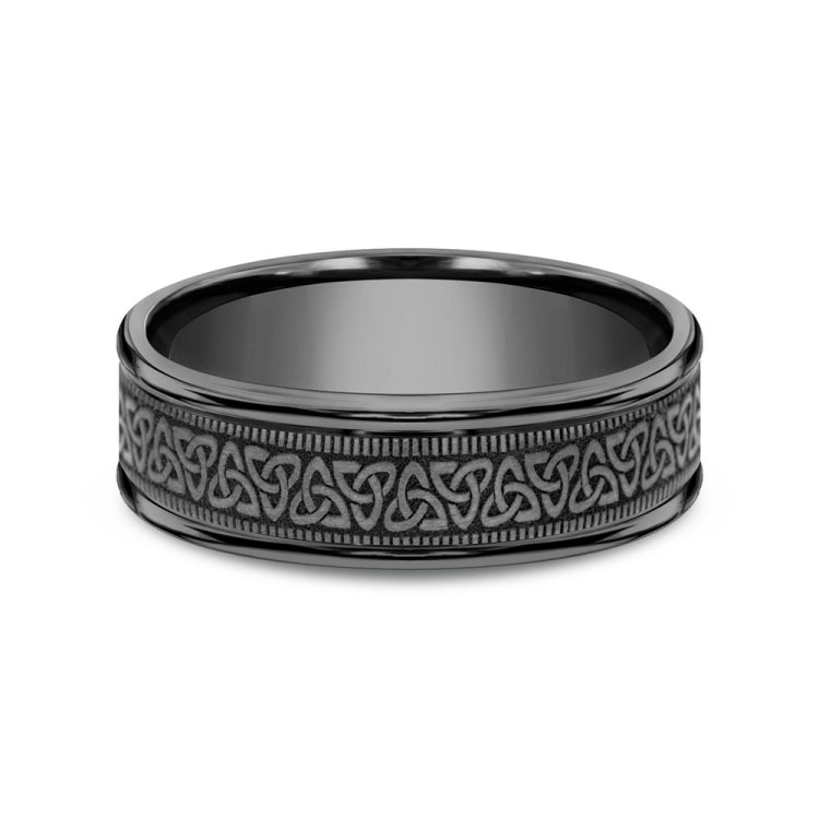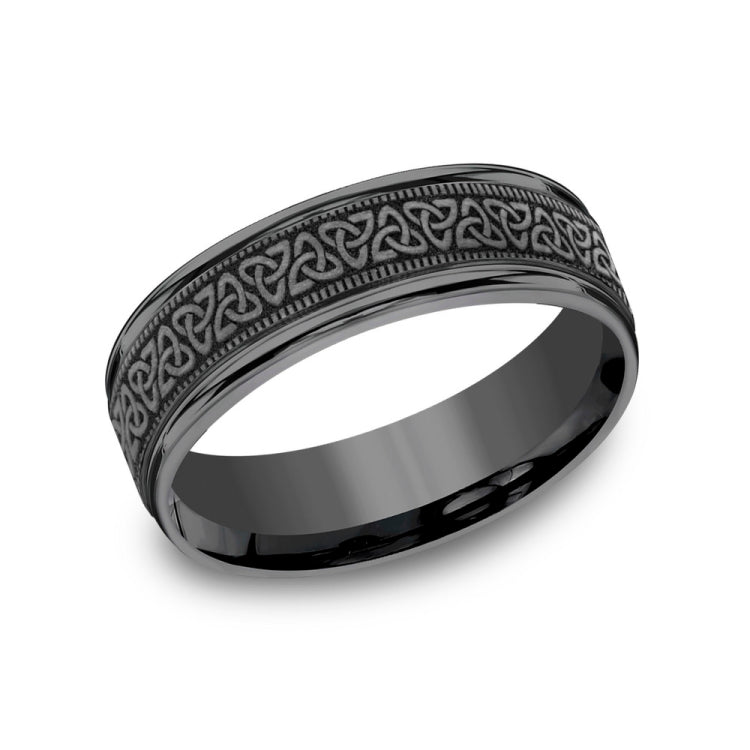 7mm, Comfort fitDarkened TantalumCeltic knot pattern, milgrain detailing, polished round edges