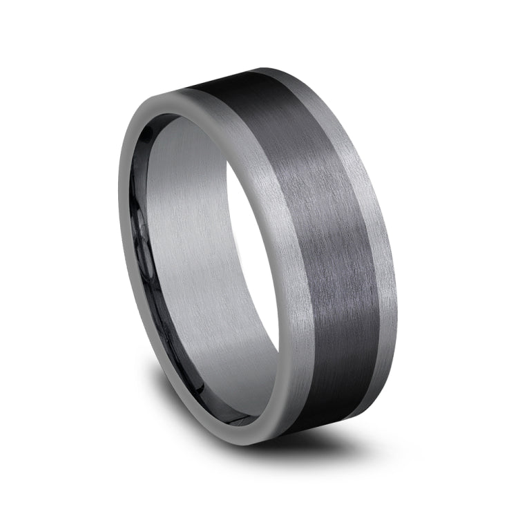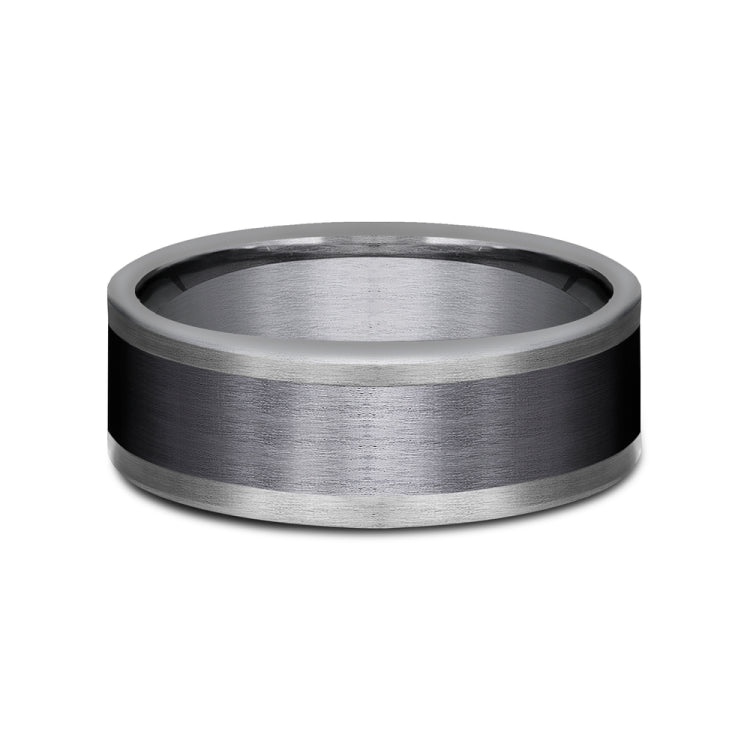 8mm, Comfort fitGrey Tantalum and Black TitaniumSatin center, straight edges