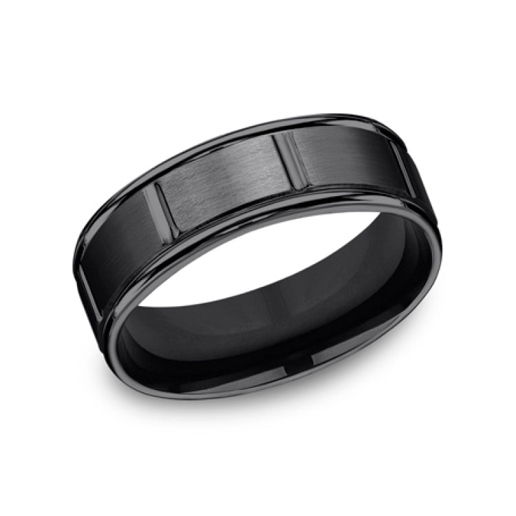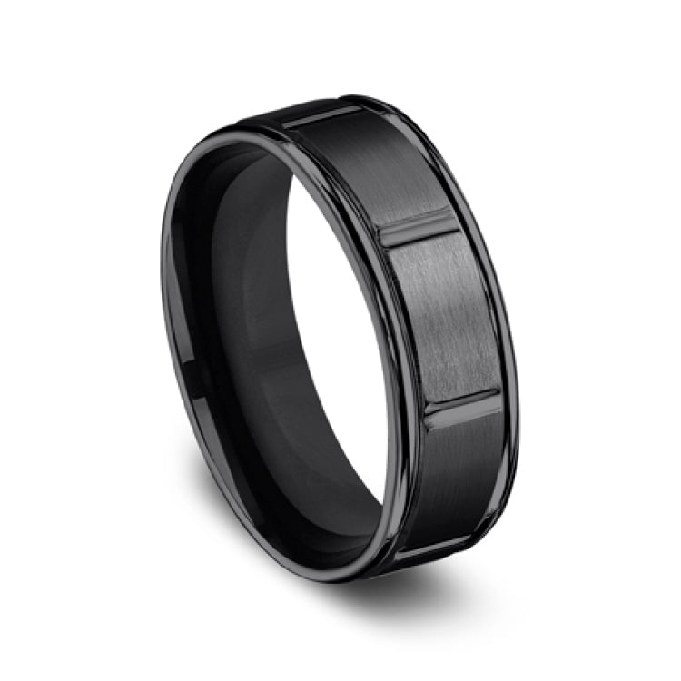 7mm, Comfort fitBlack TitaniumSatin finish with polished vertical cuts, polished round edges