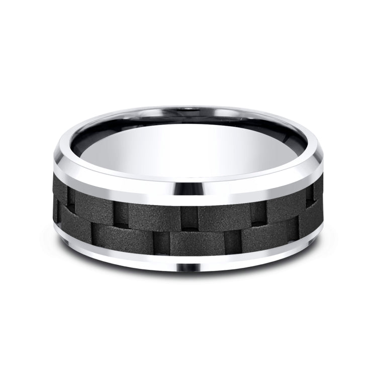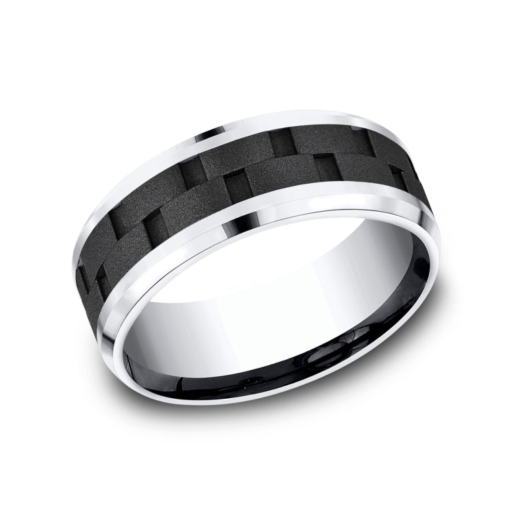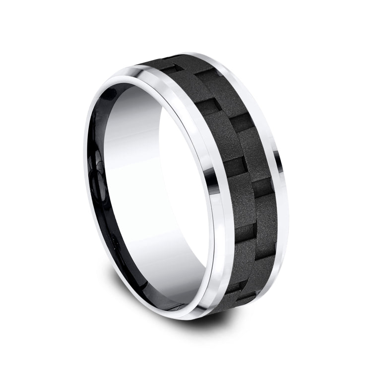8mm, Comfort fitBlack CobaltLink patterned center, polished drop bevel edges