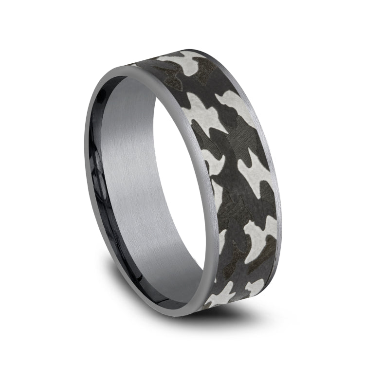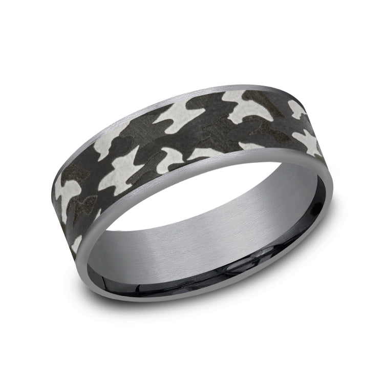 7.5mm, Comfort fitGrey and Darkened TantalumCamouflage patterned center, thin edges