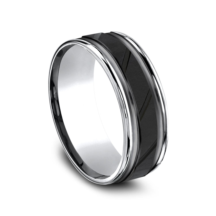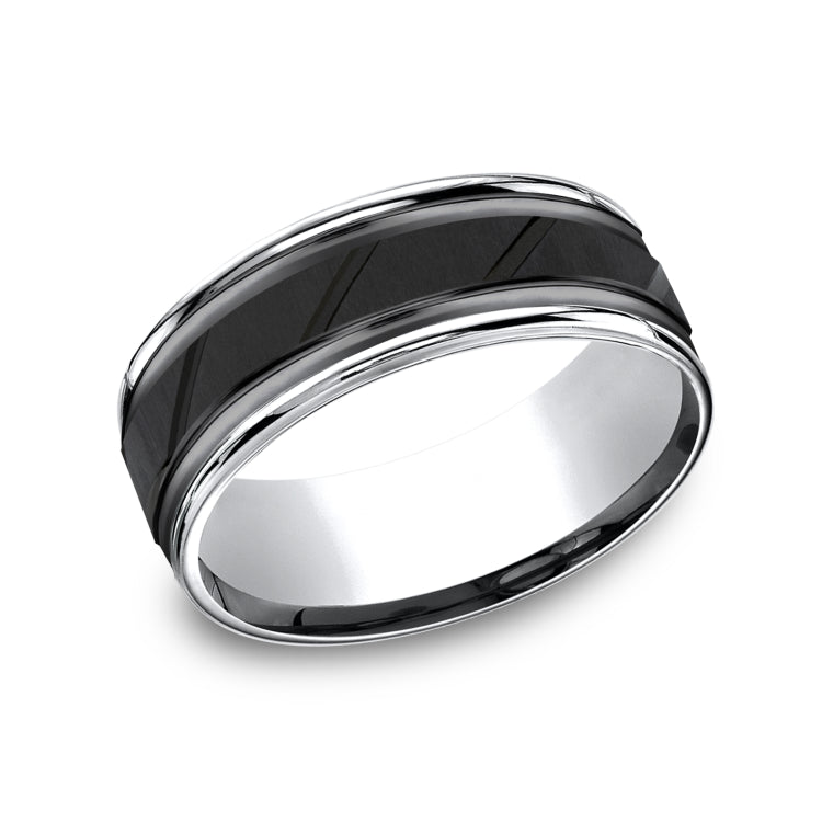 8mm, Comfort fitBlack and White CobaltDiagonal cut center, polished round edges
