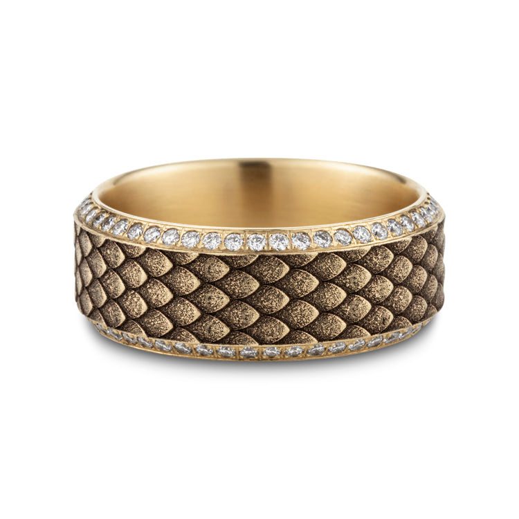 Dragon scale patterned center with double eternity diamond edges